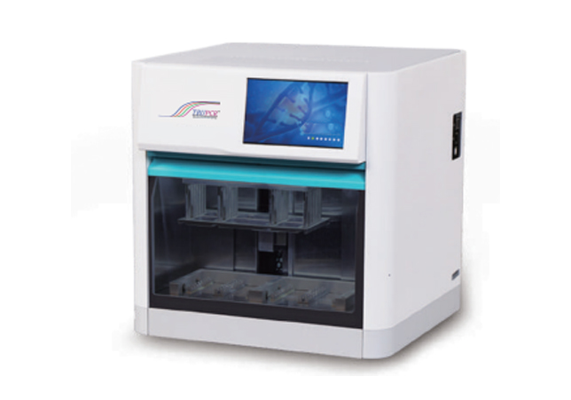 Programmable system and humidifying that automates the steps in a slide-based FISH procedure, and provides walkaway convenience for clinical and research personnel. Up to 12 slides can be easily be added or removed with one hand. Two-side heating of slides that allows achieving exact correspondence of the set and actual temperature and maintaining uniform temperature across all slide positions. To built upon the innovative design, TDH-500 is ideally suited for the needs of cytogenetic laboratories to provide a good instrument.
