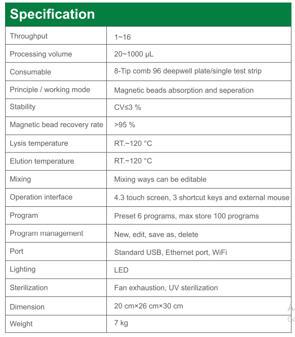 Auto Ex 32S is a device for nucleic acid extraction and purification based on magnetic bead method. It can be used for fully automatic extraction and purification of DNA, RNA and protein. Through the adsorption, transfer and release of magnetic beads by magnetic rods and magnetic rod sleeve, the transfer of magnetic beads / samples is realized, and the automatic extraction and purification opera- tion is completed. The operation is automated, fast and easy. Using special kits or 96-well plates, 1 to 32 samples can be processed at the same time. With different types of magnetic bead and nucleic acid extraction reagents, rapid extraction of animal, plant tissue, blood and other body fluid samples can be achieved. It is mainly used for the extraction and purification of nucleic acid from human samples.